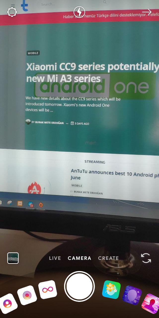 In the new interface, the camera is grouped under 3 headings. Live, camera and create. As the name suggests, the Live tab allows you to broadcast live video on Instagram. The second tab (default) is the camera. A well thought-out wheel at the bottom of the screen provides access to various features. The third tab, called Create, allows you to design stories. A gradient background is displayed. The button at the top of the screen or the shortcuts at the bottom provide access to Questions, Polls and Countdown.
